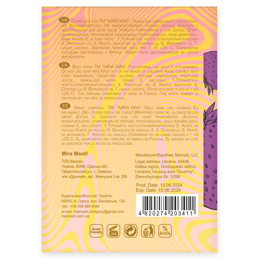 Аромаспрей для тіла "BERRY CPLAСH" Mira Max 225 мл