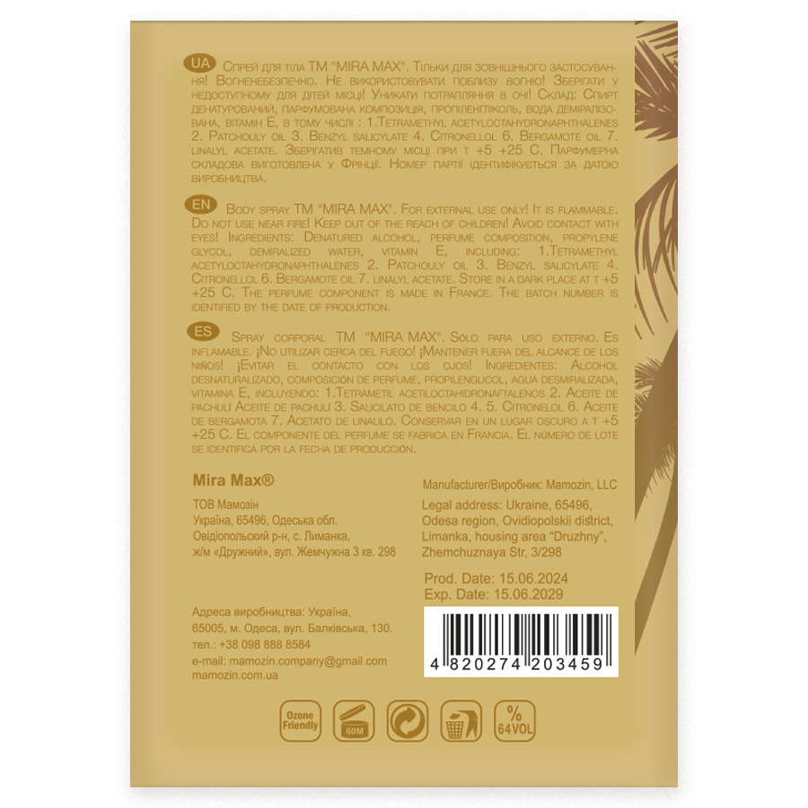 Аромаспрей для тіла "COCONT PASSION" Mira Max 225 мл
