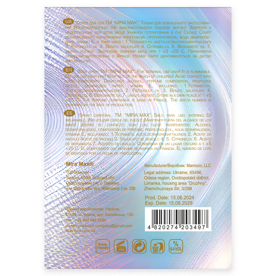 Аромаспрей для тіла "ENDLES SUMMER" Mira Max 225 мл