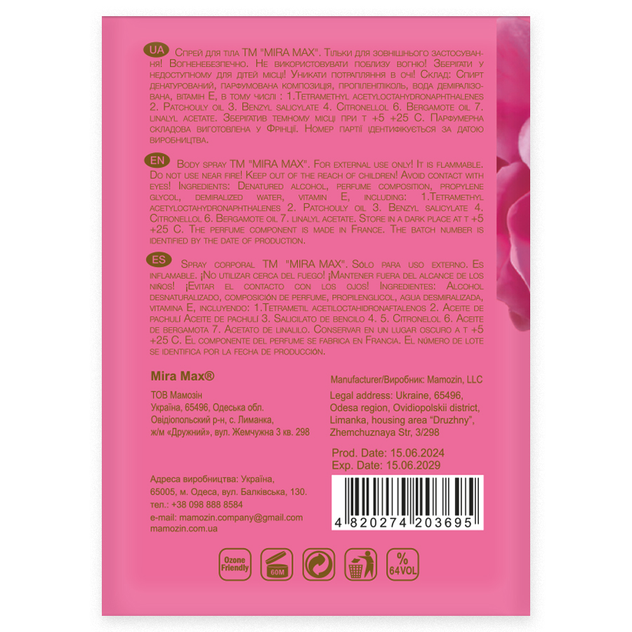 Аромаспрей для тіла "LUX TEMPTATION" Mira Max 225 мл