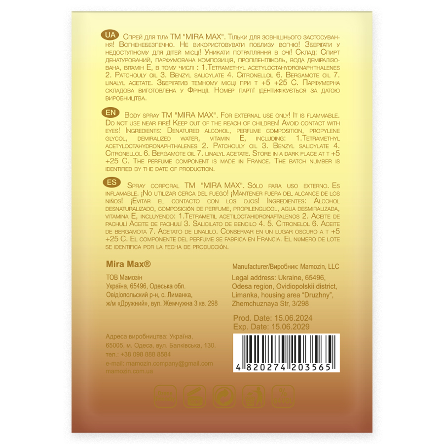 Аромаспрей для тіла "MANGO TEMPTATI" Mira Max 225 мл