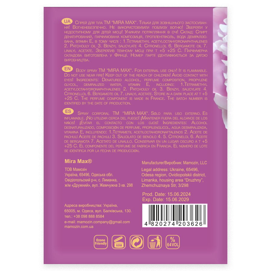 Аромаспрей для тіла "ROMANTIC WISH" Mira Max 225 мл