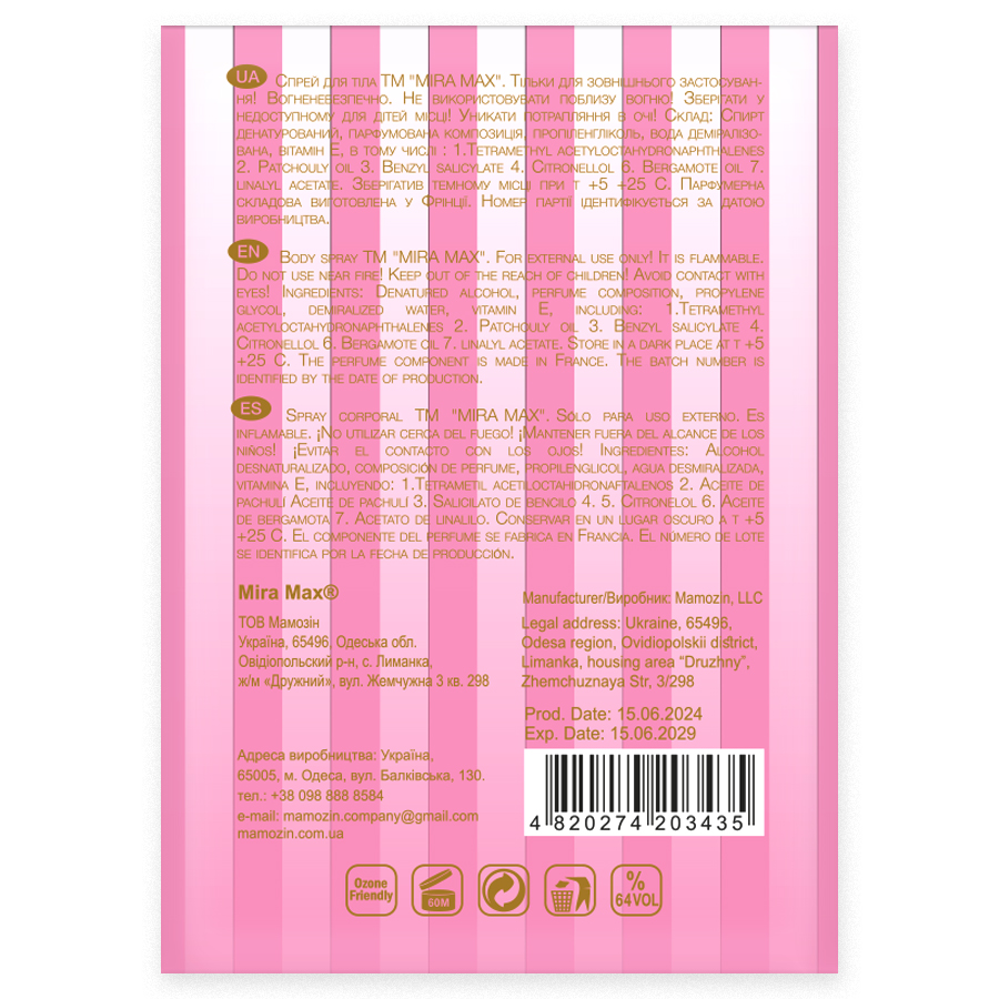 Аромаспрей для тіла "SEA SHELL" Mira Max 225 мл