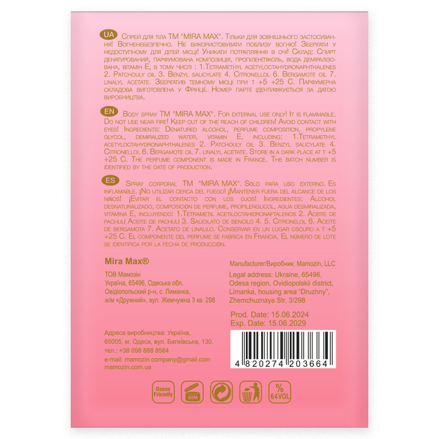 Аромаспрей для тіла "SHEER LOVE" Mira Max 225 мл