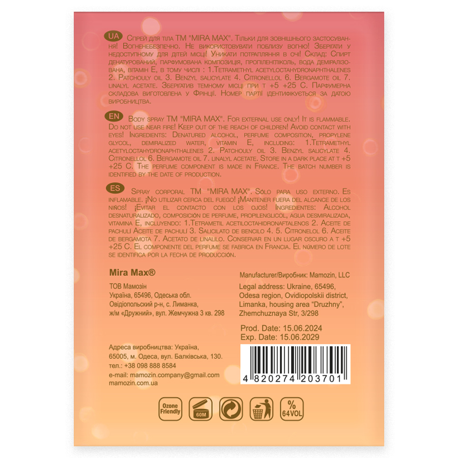 Аромаспрей для тіла "TAMPATION" Mira Max 225 мл