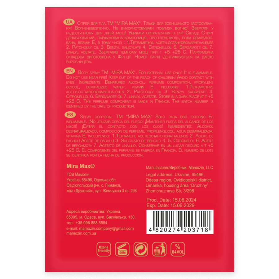 Аромаспрей для тіла "TOTAL" Mira Max 225 мл