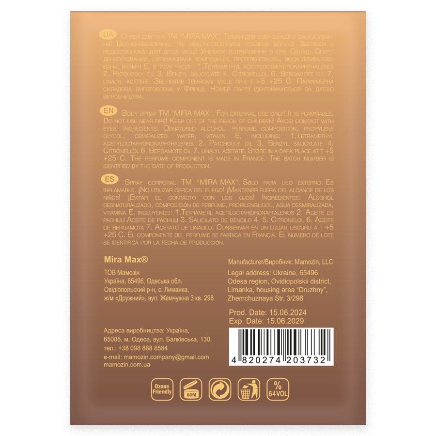 Аромаспрей для тіла "VANILLA LOVE" Mira Max 225 мл
