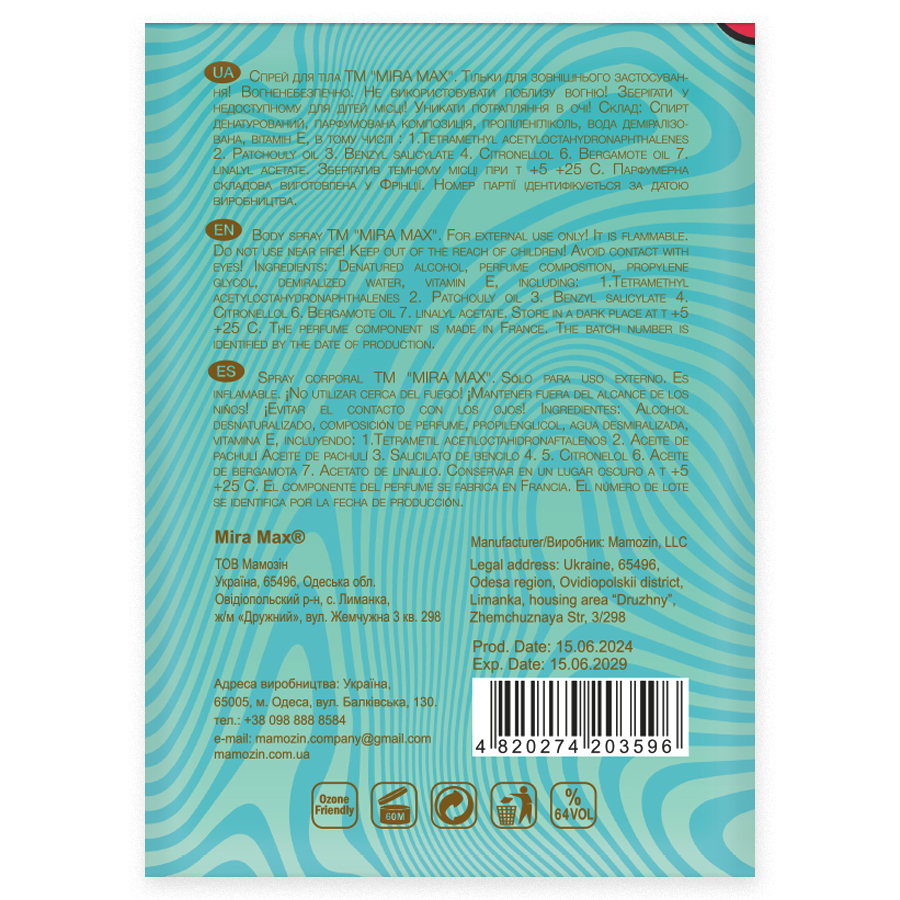 Аромаспрей для тела "PUNCHY BLOOMS" Mira Max 225 мл
