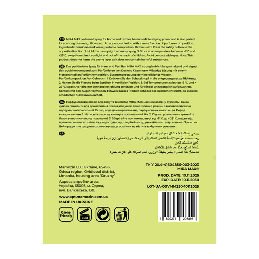 Аромаспрей Mira Max Fresh Havana, 250 мл