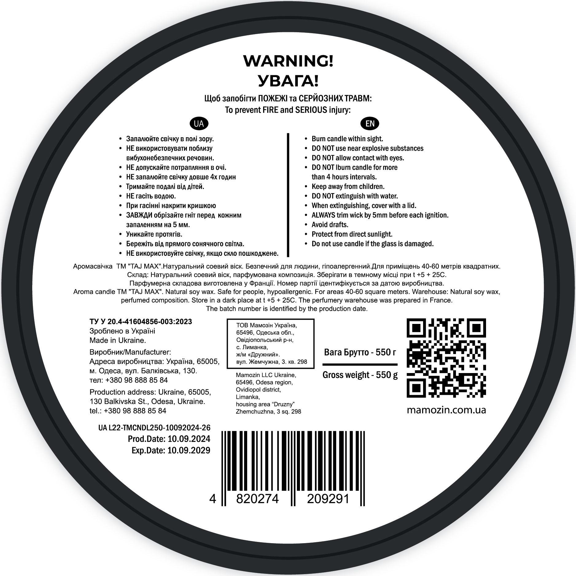 Аромасвічка "AMBER POWDER" Taj Max 250g