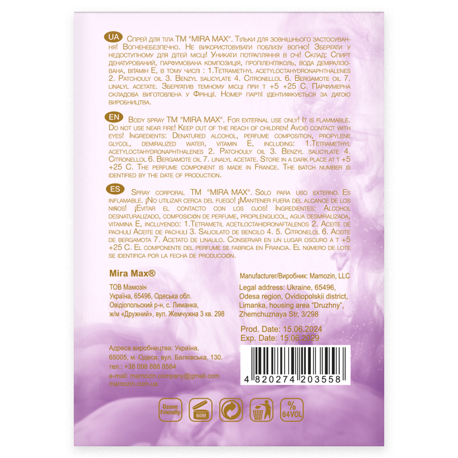 Аромаспрей для тіла "LOVE SPELL" Mira Max 225 мл