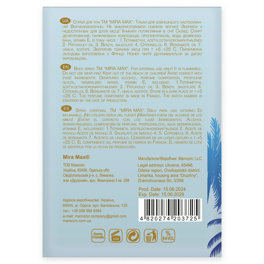 Аромаспрей для тіла "WAVES" Mira Max 225 мл